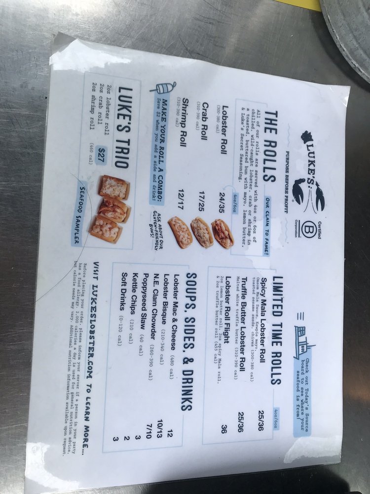 “ I love this location for Lukes! The roll flight (with crab, lobster, and shrimp) was tasty but definitely on the pricier side. It's great for a quick bite and stroll along the waterside. It's also nice to go to the grass in the park afterwards. ”